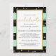 Esta elegante e moderna coleção de casamento apresenta um fundo negro e neo listrado de fundo com pontos dourados espalhados ao longo da fronteira. Personalize a cor do plano de fundo para corresponder ao seu tema de casamento ou evento. Visite nossa coleção de casamentos de 'Stripes de espuma' para ver todos os produtos correspondentes.