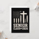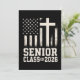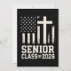 Layout ousado da turma de formatura de 2026 com elementos da bandeira dos EUA e cruz. Ótimo para estudantes orgulhosos de seus valores e prontos para se formar com força.