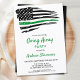 Convites de despedida para soldado com a Thin Green Line Flag. Estes convites modernos da bandeira americana Thin Green Line são perfeitos para uma festa de despedida de um soldado, despedida para implantação militar, celebração de boas-vindas a casa de militares, formatura militar e aposentadorias militares. Personalize este convite da bandeira americana com o evento do seu soldado, nome e detalhes da festa.