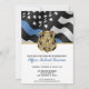Honre a dedicação e o trabalho de duro de um novo oficial de polícia com este convite de formatura policial personalizável. Apresentando um crachá policial e a bandeira da polícia com riscas brancas e pretas e uma orgulhosa linha azul fina, esta design simboliza força, serviço e sacrifício. O convite é personalizado com o nome e os detalhes da festa do formando, fazer-o como uma lembrança memorável para amigos, familiares e colegas oficiais. Perfeito para celebrar a graduação, promoção ou marco de uma academia de polícia na carreira de um futuro oficial. Convide seus convidados em estilo e mostre suporte para o membro mais novo da comunidade de linha azul fina.