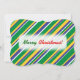 Este design de convite de Natal apresenta um padrão de listras (ou linhas) de várias larguras, verde colorido, amarelo, azul ou branco. Essas cores foram inspiradas pelas da bandeira nacional do Brasil. A frente também apresenta um desejo caloroso de "Feliz Natal!", em texto vermelho e verde. A parte traseira apresenta um título personalizável e informações de convite personalizadas. [~Z0000094]