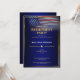 Gloriosa bandeira americana ondulando contra um fundo azul escuro. Um modelo de festa de aposentadoria elegante que é simples de editar. Este design elegante é adequado para veteranos, militares, policiais, empregos relacionados ao governo ou empregos relacionados ao patriotismo.