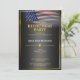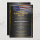 Gloriosa bandeira americana ondulando contra um fundo preto. Um modelo de festa de aposentadoria elegante que é simples de editar. Este design elegante é adequado para veteranos, militares, policiais, empregos relacionados ao governo ou empregos relacionados ao patriotismo.