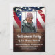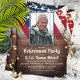 Modelo clássico de foto de um design vermelho, branco e azul de bandeira dos EUA com luzes de festas de cordas celebratórias para esses convites de festas de aposentadoria militar que você pode personalizar para sua próxima celebração.
