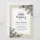 Convites Banheira Negra Rosa Flora Sage & White Checked Ani