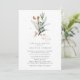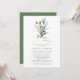Este Chá de panela de Ramo de Ouro Moderno - apresenta galhos de verde e ouro, gotas de ouro e formas geométricas com letra elegante. O reverso deste convite é um elegante verde-oliva escuro.