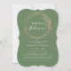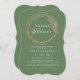 Este Chá de panela de Ramo de Ouro Moderno - apresenta galhos de verde e ouro, gotas de ouro e formas geométricas com letra elegante. O reverso deste convite é elegante verde-oliva escuro.