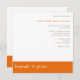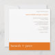 Convite de casamento contemporâneo do ColorScheme Wedding Basics. Placas achatadas de 5,25" x 5,25" com envelopes brancos. Texto realçado e um banner no verão de 2011 cor laranja-padrão em relação a um fundo branco.