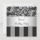 Convite de festas.Todos os eventos, celebrações, anúncios e Convites de aniversário. Adequado para todos os aniversários e eventos etários. O Rsvp está disponível sob solicitação em estilo semelhante. Cinzas Na moda bonitas e pretos com pretos e Cinzas com padrão de risca em camadas. Satin ou Metálico parecem Brancos e Prateados. Personalizar para alterar o estilo e o tamanho da fonte a personalizar.