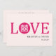Design de casamento chinês simples e moderno com o logotipo "dupla felicidade" (囍) em LOVE. Para alterar apenas o texto, use a opção personalizar. Para alterações mais abrangentes, incluindo a alteração da cor de fundo, da fonte, da cor da fonte, do tamanho da fonte ou do posicionamento do texto, use a opção "personalizá-la".