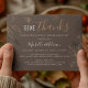 Um convite para o banquete de janto de ação de graças que aura classe e sofisticação apresentando um modelo 'dá aos obrigados usando uma fusão de fontes modernas e elegantes de escrita de caligrafia. O convite é decorado com dourado falso clássico e folhagem de esqueleto preto sobre um fundo castanho rústico da floresta. É fácil personalizar o modelo clicando no botão 'personalizar mais'.