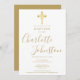 Assinatura moderna de ouro batismo batizante, com uma elegante cruz de ouro e um nome de assinatura de script. Personalize com seu batismo especial ou informações batizantes em letras de ouro em chic nesta design neutra em termos de gênero. Projetado por Thisnotme©
