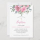 Estes convites para batismo apresentam um design floral de aquarela moderno com rosas rosadas poeirentas e folhagem de eucalipto. Personalize-os com o seu texto.