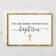 Convite Elegante Glitter ADULT BAPTISM. Convite Elegante ADULT BAPTISM, com simples cruz dourada, borda falsa com brilho dourado e tipografia de escrita decorativa. Há um texto PERSONALIZÁVEL no verso onde você pode adicionar seus detalhes de serviço e evento, além de um verso de Bíblia Cristã OPCIONAL baseado em 2 Corinthians 5:17, a saber, "Se alguém estiver em Cristo, ele é uma nova criação". Escolha entre uma ampla seleção de cartões de batismo adulto, convites e suprimentos para festas, projetados por Designs bereanos.