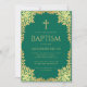 Convites Baptism Emerald Green Faux Gold Foil deixa Ornamen