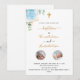 Pelo batismo de 2 crianças, rapazes, irmãos. Um fundo branco decorado com verde de eucalipto e folhas de ouro e uma flor azul clara. Personalize e os nomes, fotos e detalhes da cerimônia infantis. Letras pretas e ouros coloridas.