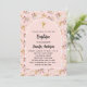 Um quadro de arco sobre um padrão de grama pampas e flores cor-de-rosa e uma cruz ouro. Personalize e adicione um nome e detalhes.