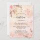 Um fundo rosa dourado, rosado, rosado e roxo, com aspecto metálico. Decorados com ouro rosa e flores cor-de-rosa, rosas, erva-pampas, borboletas e uma cruz de ouro. Personalize e adicione um nome e os detalhes.