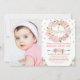 O convite lindo do baptismo que caracteriza o rosa cora grinalda da flor da aguarela e o confete do ouro do falso polvilha