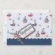 Cartão náutico do convite do baptismo do tema com veleiros, caranguejos, e âncoras com um arco e um Tag da guita 3D-look.