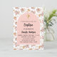 Um quadro de arco sobre um padrão de grama pampas e flores cor-de-rosa e uma cruz ouro. Personalize e adicione um nome e detalhes.