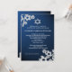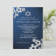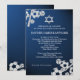 Combinação de beisebol e esportes de futebol: o temático convite mitzvah do bar em azul-gradiente com texto ousado e editável e Estrela de prata de David. Esferas de beisebol, taco e futebol de tom prateado nos cantos superior e inferior deste elegante convite mitzvah multiesportivo.