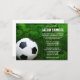 Um convite de uma bola de futebol moderna, Bat Mitzvah, com um design verde de grama verde. Perfeito para uma festa temática desportiva!