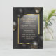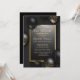Um convite moderno, chico e glamouroso com balões sobre fundo negro.