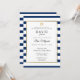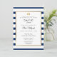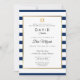 Com um fundo clássico listrado de azul e branco, este elegante convite de Bar Mitzvah apresenta uma moldura em folha de ouro falso que emoldura os seus detalhes em tipografia chic. Concebido por Thisisnotme©