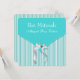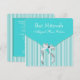 Convites de Bar Mitzvah listrados de azul turquesa e branco. Você pode personalizar facilmente este lindo convite de Bar Mitzvah azul turquesa simplesmente adicionando seus detalhes no estilo de fonte e redação de sua escolha.