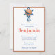 Você é a estrela do dia! Mostre-o no estilo desportivo com este convite para o Bar de basquetebol judeu-laranja azul, Mitzvah, ou Bat Mitzvah.