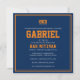 Moderno e casual, este Contemporâneo Convite Mitzvah. O esquema de cores - marinho e laranja - acende seus detalhes de celebração!