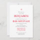 Um Bar Mitzvah Star de David Red padrão Hebraico Convite Judaico. O modelo de design é facilmente alterado para suas informações. Escolha entre uma faixa de tipos de papel. O reverso tem um padrão Star de David repetindo. De uma gama de papéis de carta das Designs Finas de Chessie. Clique no link nesta página para a coleção ou veja a coleção aqui https://www.zazzle.com/collections/bar_mitzvah_and_bat_mitzvah_ideas-119237558057794977