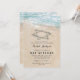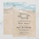 Convites de festa de bat mitzvah com tema de praia, apresentando um fundo de ilha tropical de verão, uma praia arenosa vintage com a estrela de davi na costa, e um modelo de mitzvah que é fácil de personalizar.
