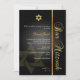 O Bar PixDezines Mitzvah convoca em preto e ouro com uma estrela de folha de ouro de David. Cor e fontes do plano de fundo DIY.