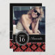 Garota, divertida, bonita, mas sofisticada e elegante, este Convite de festas personalizado de Glitter Damask Negra e Vermelha com sua foto é a forma perfeita de convidar seus convidados para a doce festa de dezesseis filhos.Nota: brilho é um efeito fotográfico IMPRESSO. Design de Elke Clarke©.