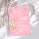 Um convite moderno, na moda e glamouroso para um Chá de panela de bolinho. Um fundo rosado feminino rosa com bolhas, um par de flautas, óculos. O nome é escrito com um moderno estilo escrito à mão. Personalize e adicione os detalhes da sua festa.