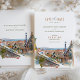 Entusiasmem-se com o seu casamento em Barcelona, com o espantoso cartão "Salve a data" com um belo trabalho de arte de aquarela do icônico Park Guell da cidade. Barcelona, conhecida por sua arquitetura espantosa e história rica, é o destino perfeito para um casamento. A cidade é particularmente famosa pela sua arquitetura inusitada e colorida de arte nouveau, com obras-primas de Antoni Gaudi, como a Sagrada Família, Casa Batllo, e La Pedrera. O Park Guell, representado nesta trabalho de arte, é um belo parque público cheio de incríveis obras e esculturas de mosaicos de Gaudi. É um local popular para casais tirarem fotos e admirarem as visões panorâmicas da cidade. Certifique-se de que os seus convidados não percam esta experiência inesquecível com este cartão Guardar a Data.