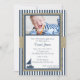 As faixas azuis marinhos e os barcos-vela decoram este convite para bebês náuticos, ou anúncio para batizar de bebês ou qualquer ocasião.