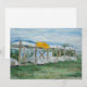 Convite / cartão de anúncio plano com uma pintura em aquarela de barcos empilhados na costa, prontos para serem remados até embarcações ancoradas na Baía de Casco, perto de Portland, Maine. Obra de arte: Aquarela e lápis sobre papel. ©2006 Dominic A. White
