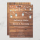 Especial de casamento no campo. Mason jar na parede do celeiro russo com madeira ao lado. Fácil de mudar os nomes e as informações. ©nuptial Barn Weding Wall Mason Jar String Light