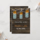 Rustic Barnwood, luzes de cordas balançando com folhas de queda num casamento de jarro de pedras Obrigado Cartões Flat. Produtos correspondentes também disponíveis.