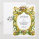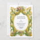 This wedding invitations template was derived from an antique 1685 to 1724 Baroque Rococo style ornate color cartouche of floral garlands, fruit and foliage. You can easily personalize the text and customize the background color in this design template.