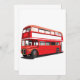 Um ônibus vermelho de dois andares na rua. Este design parece realmente eficaz neste Convites