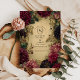Convites Barroco Dourado antigo e Borgonha Dahlia Romance