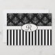 elegância clássica em listras brancas e pretas e padrão barroco com um lugar para adicionar seu nome ou monograma, ou o que quiser. Excelente para casamentos.