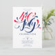 Este vibrante e patriótico convite de festas de 4 de julho é a forma perfeita de celebrar a independência dos EUA. Com a sua tipografia ocular, dá o tom para uma reunião festiva e cheia de diversão. Quer você esteja hospedando um churrasco de quintal ou uma festa de exibição de fogos de artifício, este convite para 4 de julho impressionará seus convidados e garantirá uma celebração memorável.