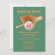 Celebrate fifty years of fun and friendship with this retro Batting Fifty baseball birthday invitation. A vintage baseball glove, ball, and bat design take center stage on a soft green background, with the number 50 proudly shown inside the ball. The text “Batting Fifty” and “Still in the Game” add a playful nod to a life full of great innings. The back repeats the nostalgic baseball design with the phrase “Friends, Food, Play Ball” — the perfect call to join the celebration. Great for any baseball fan or sports-themed party.