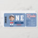Celebre o grande dia do seu jogador com este primeiro convite de aniversário no tema do beisebol, com a foto do seu filho! Estimulada como uma passagem esportiva clássica e tocada com uma manchete divertida de "Rookie of the Year", assim como uma modelo para as "estatísticas dos jogadores", esta design inclui um modelo de foto e uma vibração divertida. Com uma paleta de cor azul e vermelha e charme esportivo, é a escolha perfeita para a festa de primeiro aniversario de um menino. Totalmente personalizável e ideal para os pais planejarem um aniversário de beisebol, uma festa de novato ou uma celebração de marco no tema do esporte.