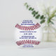 Aperfeiçoe para o fã de esportes e a festa de aniversário temático do basebol. O convite no estoque cortado redondo é projetado olhar como um basebol completo com a costura vermelha. Há um texto completamente customizável na pia batismal do azul do divertimento. O verso do convite do basebol tem riscas azuis. Nenhum partido temático do basebol está completo sem o convite do design do basebol!